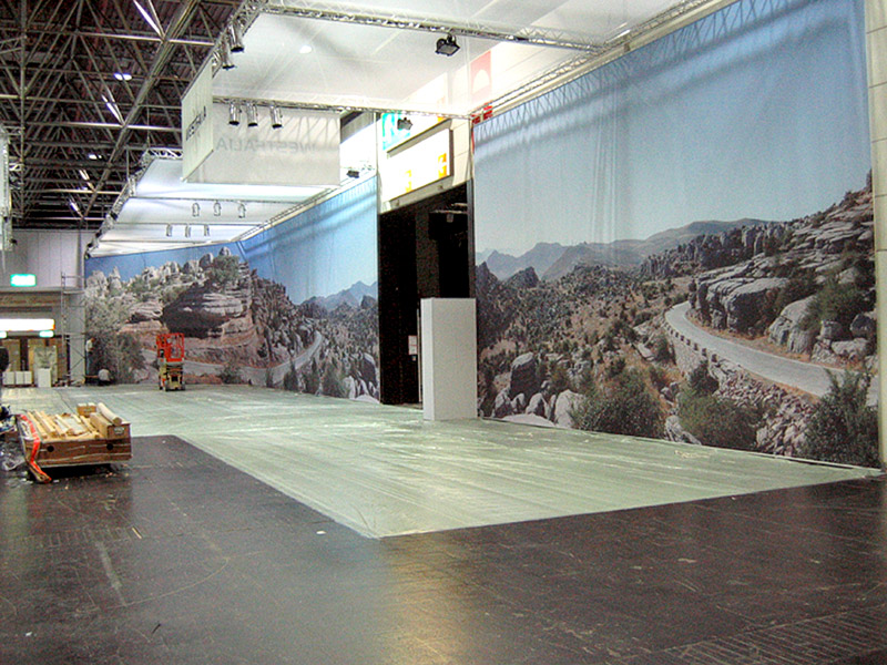 Hintergründe drucken wir auf Textilien, Planen, Folien oder Papier und liefern sie fertig konfektioniert oder mit Beschnitt zum Aufspannen.